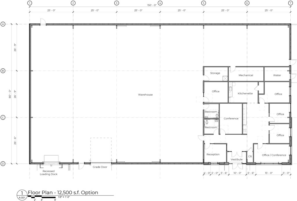 Ideal for manufacturing facilities, packaging and distribution operations, and businesses with growing storage needs, this 12,500 square-foot pre-engineered Butler model has the following features: