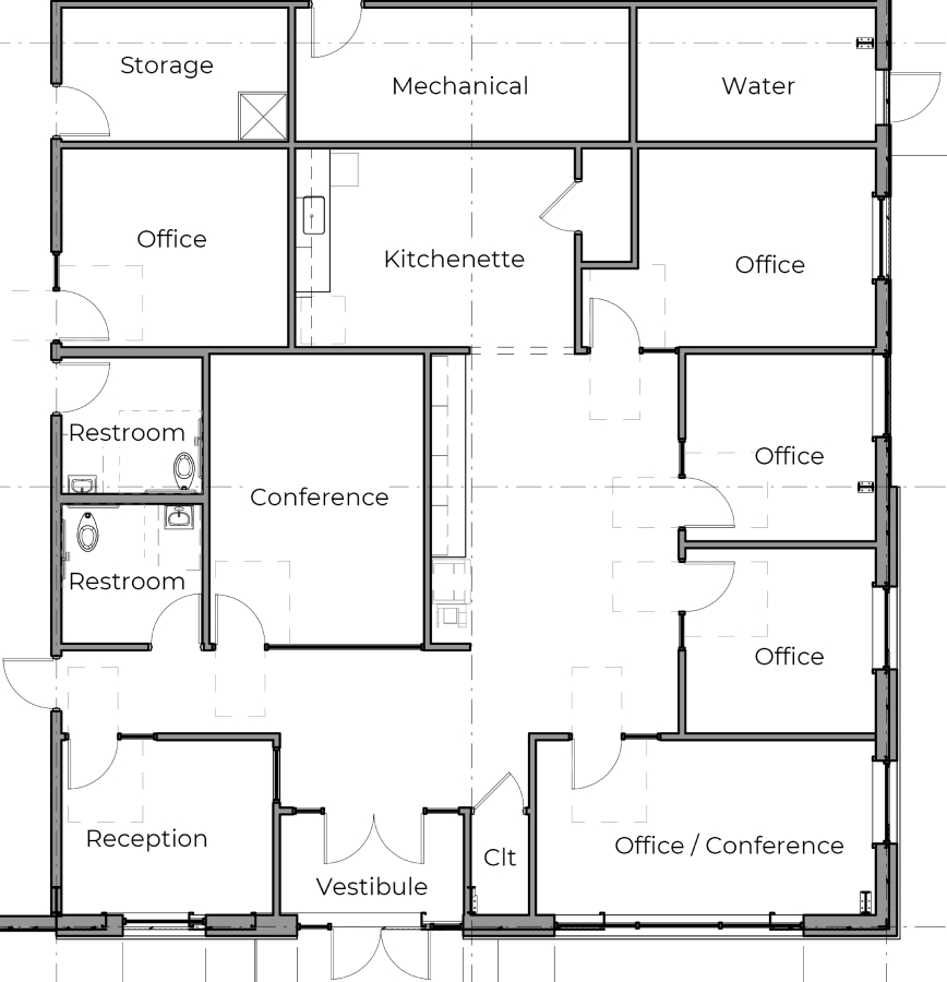 - Storefront glazing windows and glass entrance door in office area